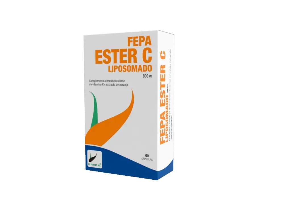FEPA ESTER C 800 es un complemento alimenticio a base de vitamina C y extracto de naranja liposomada. La vitamina C es esencial para el funcionamiento del sistema inmunitario y la formación de colágeno en el cuerpo. Además, protege las células del daño oxidativo, promueve un metabolismo energético normal y ayuda a reducir la fatiga. Este producto también mejora la absorción del hierro. Cada cápsula proporciona una cantidad óptima de nutrientes para el cuerpo. Asegúrate de mantener una dieta equilibrada y un estilo de vida saludable. Envase de 60 cápsulas de 1081mg, peso neto 64,86g.