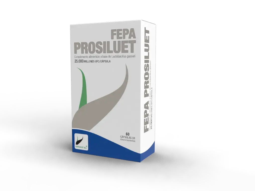 Fepa Prosiluet es un complemento alimenticio que contiene lactobacillus gasseri para mejorar la salud intestinal. Cada cápsula aporta 450 mg de lactobacillus gasseri con 25.000 millones de UFC. Sin gluten ni lactosa, adecuado para vegetarianos y veganos. Las 60 cápsulas gastroresistentes garantizan una dosis efectiva. No superar la dosis diaria recomendada y mantener fuera del alcance de los niños.