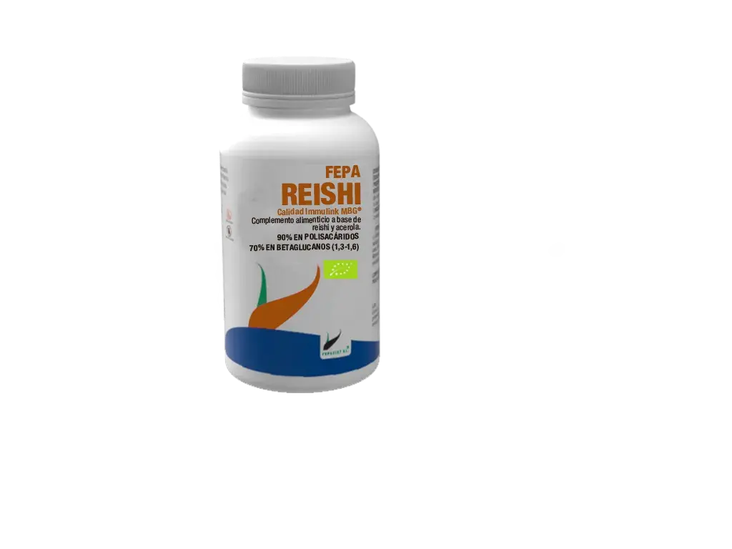 FEPA REISHI es un complemento alimenticio de alta calidad que combina extracto orgánico de Reishi con extracto de Acerola, ambos procedentes de agricultura ecológica. El Reishi aporta un 90% de polisacáridos y un 70% en betaglucanos, mientras que la Acerola contribuye con un 34% de vitamina C. Esta combinación única potencia el sistema inmunológico y ofrece beneficios antioxidantes. Cada dosis diaria de 2 cápsulas garantiza la ingesta adecuada de nutrientes esenciales para el organismo. Mantén tu salud en óptimas condiciones con FEPA REISHI.